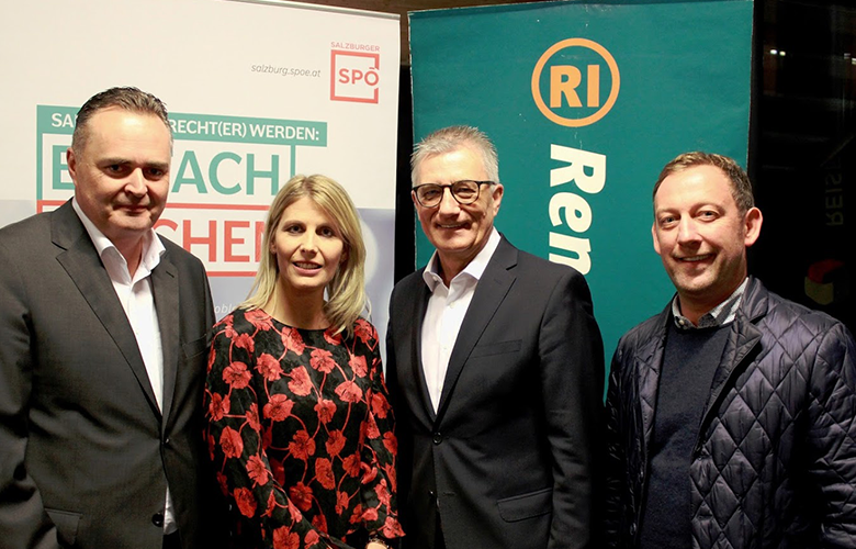 v.l.n.r.: Hans Peter Doskozil (SPÖ-Landesrat Burgenland), Sabine Klausner (Moderation, SPÖ-Landtagsabgeordnete & Stadträtin Bischofshofen), Walter Steidl (Salzburger SPÖ-Chef), Hansjörg Obinger (Bürgermeister Bischofshofen, SPÖ)