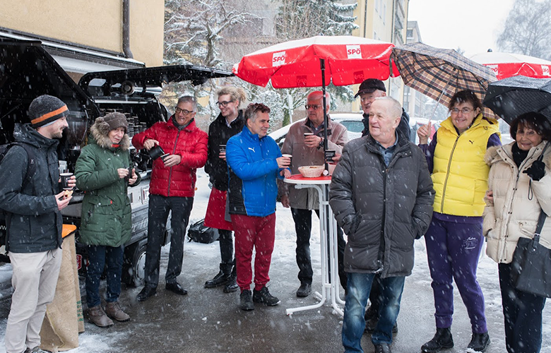 Für gewöhnlich finden politische Aktionen auf stark frequentierten Plätzen statt, um in möglichst kurzer Zeit möglichst viele Menschen mit Inhalten zu erreichen. Mit dem Espressomobil, einem zum Kaffeestand umfunktionierten Pritschenwagen setzte die Salzburger SPÖ am Mittwochnachmittag in der Zillertalstraße inmitten einer Wohngegend in Lehen bewusst einen Kontrapunkt und suchte das Gespräch mit den Anrainer_innen. „Zuhören ist die erste Pflicht, wenn man etwas verändern will“, zeigte sich SPÖ-Chef Walter Steidl überzeugt von dieser Vorgangsweise und betonte, dass man bereits mit einem ähnlichen Format, den Küchentischgesprächen, auf Probleme aufmerksam geworden sei, die mittlerweile zu den SPÖ-Kernanliegen zählen.
