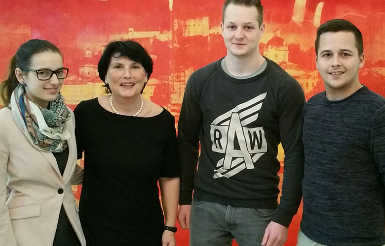 v. l. n. r. Lena Höckner, Jugendvertrauensrätin Leube; SPÖ-Arbeitsmarktsprecherin Heidi Hirschbichler, Fabian Patleych, JVR ÖBB Lehrwerkstatt; Bence Puskely, JVR ÖBB Lehrwerkstatt