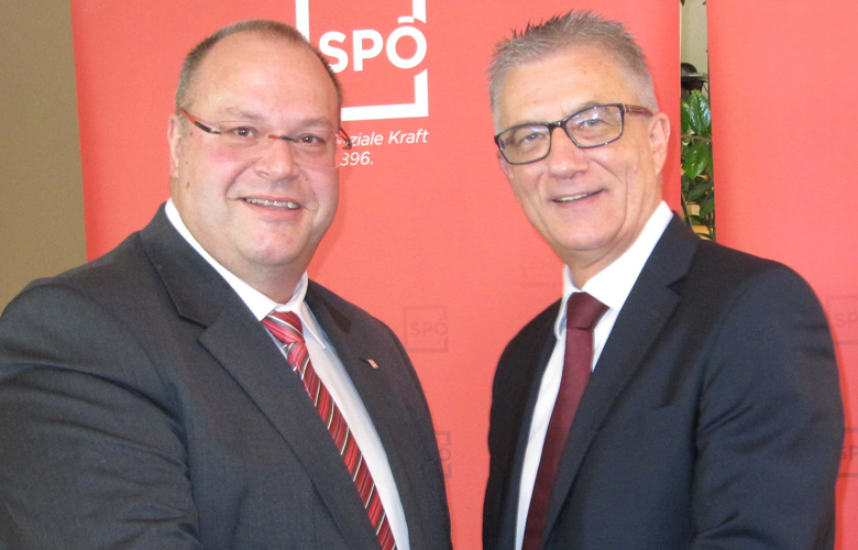 Foto Mitte: Landesparteivorsitzender LAbg. Walter Steidl gratuliert Abg. z. NR Walter Bacher zur Wiederwahl.